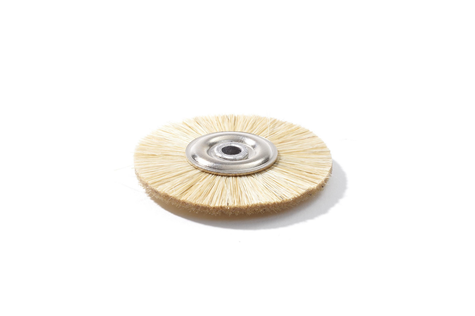 La spazzola circolare in setola bianca dura è uno strumento professionale ideale per operazioni di pulizia, sbavatura e pre-lucidatura su metalli preziosi, leghe e superfici resistenti.